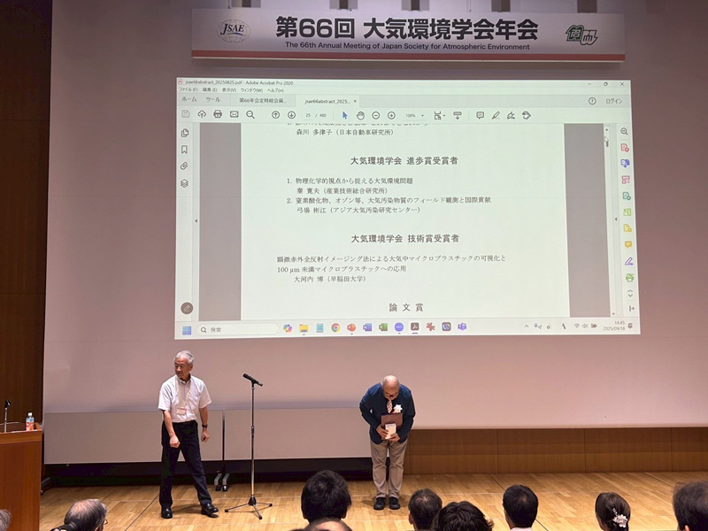 早稲田大学・大河内 博教授が「大気中マイクロプラスチック分析技術」で大気環境学会 技術賞を受賞しました
