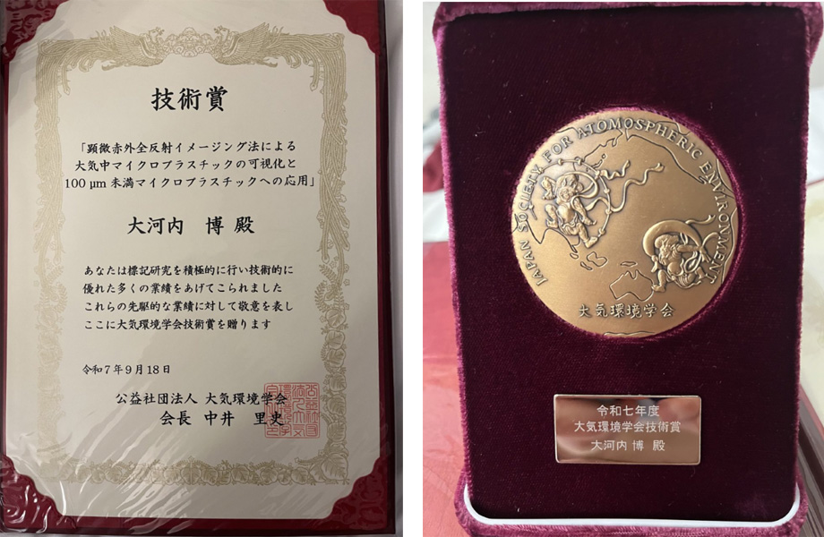 2025年の大気環境学会第63回年会において、早稲田大学 創造理工学部 環境資源工学科の 大河内博教授 が、「顕微赤外全反射イメージング法(µFTIR-ATR imaging)による大気中マイクロプラスチック(AMPs)の高感度・高分解能分析法の確立」により技術賞を受賞いたしました。