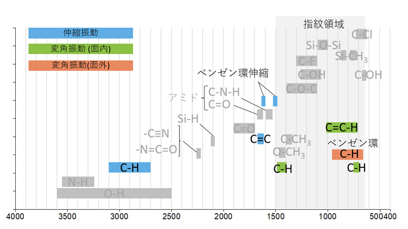 シリーズ全体を通して、各ピーク波数の帰属は以下の参考文献に基づいています。