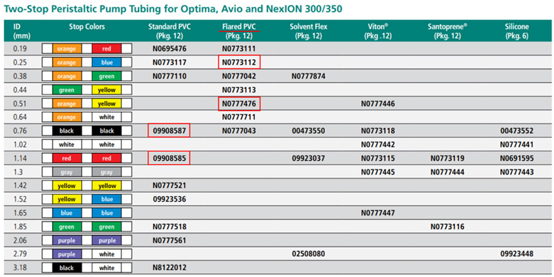 - ポンプチューブ内径:0.25 / 0.51 / 0.76 / 1.14 mm